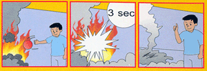 | 2. 使用方法はいたって簡単。火に投げ込むか、火事の可能性のある場所の近くにおいて置くだけです。 | |
