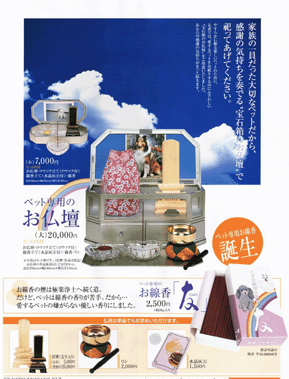 ペット用お線香 2,500円 / お仏壇(大)20,000円・(小)7,000円 /