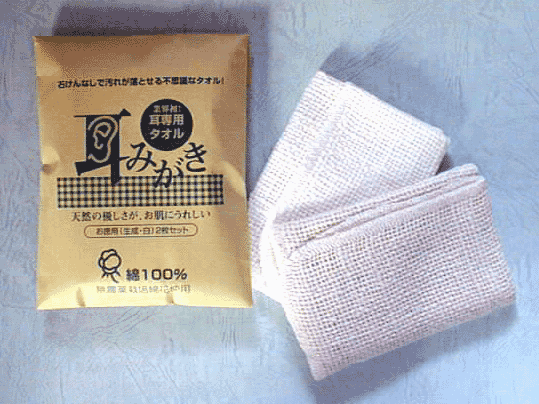 耳だつて、キレイになりたい! 天然手紡ぎのやわらかタオルが汚れ除去&若いお肌を応躍。 □特長 ●手紡ぎのやさしい肌触り。新発想の耳洗い専用タオルです。 ●独特の繊り目と抜群の吸水性(吸水率107.5%)により、石けんなしで脂汚れを落とせます。 ●皮膚の弱い方やアトピ‐の方でも安心。地球と人を守るエコタオルです。(無農薬栽培綿花使用) 素材:綿100%ガラ紡糸 サイズ:2Ocm×2Ocm □使用方法 ●お湯に浸した耳みがきを軽く絞って、耳のふちや耳たぷ、内側をつぽマッサージするように拭うだけ。 ●絞りきっていない耳みがきを耳の穴に入れて使用すると、水分が耳の中に入り炎症をおこすことがあるのでご注意ください。 ■ご使用上の注意 ※肌をあまり強くこすらないでください.体質により皮膚を痛めることがあります。 |