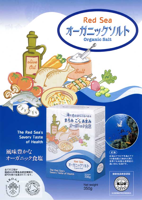 | 【製法】 最高級品質の有機食塩「紅海オーガ二ッ夕食塩」有機食塩は古代から伝わる太陽熱を利用した蒸留製法で生産されます。 海水(紅海)がまず蒸留池にポンプで送られ、除々に海水中の塩分濃度が上昇して飽和点に達すると沈澱用の池に送られ、塩分は池の底に沈澱します。 最後に池の底に沈澱した塩は採集され、清潔な塩分の濃い塩水に逆流する形で洗われリンスされます。この工程で非溶解性の不純物を取り除きます。最後に塩は乾燥され、人の手に一切触れず生産されます。化学薬品は蒸留・精製・包装行程で一切使用されていません。 |
